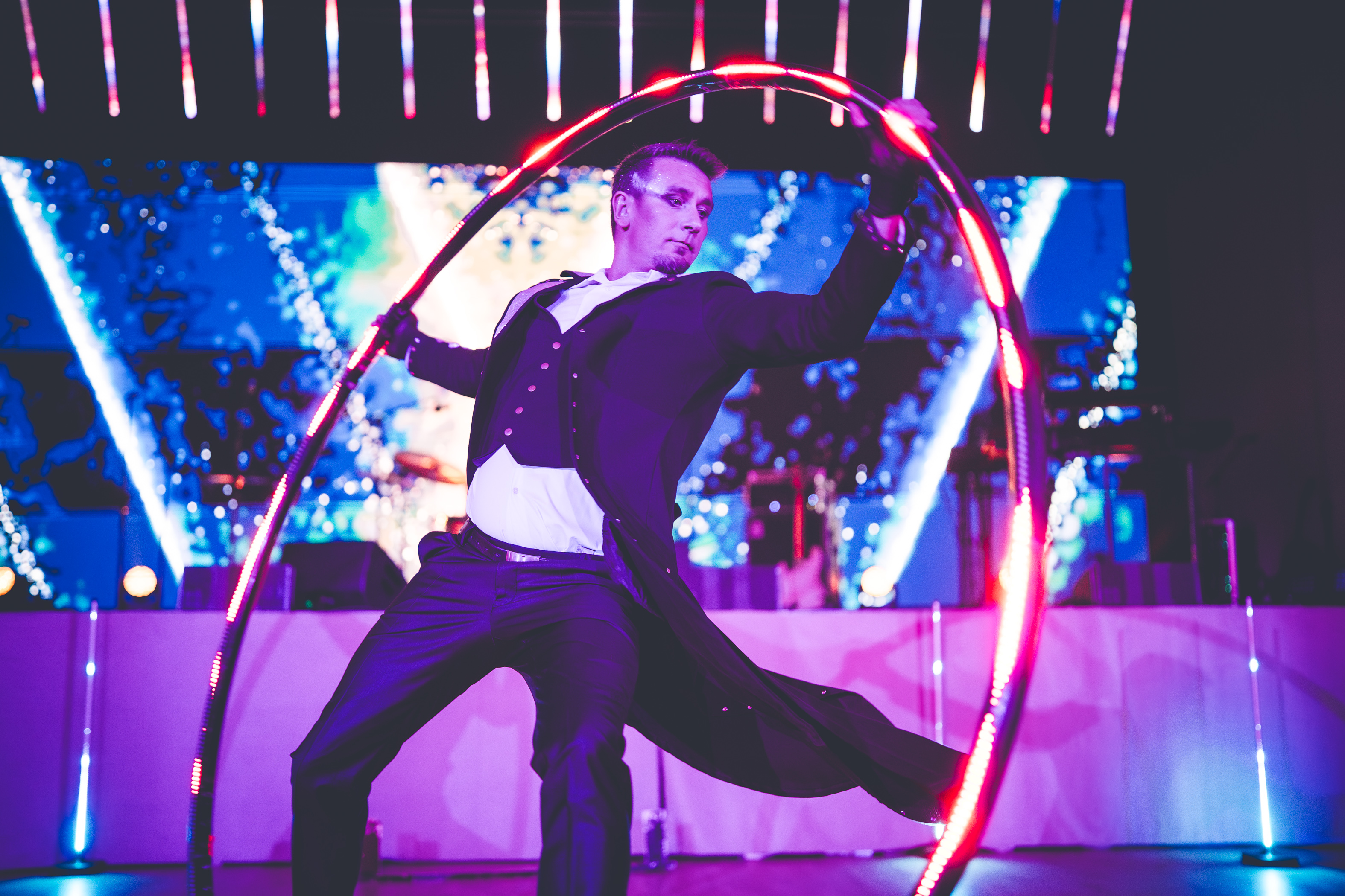 The dinner showcased flavours from North Karelia with a golden twist. Guests were served miniature Karelian pies, Arctic char, and as the sparkling cherry on top of the cake – edible gold dust. The atmosphere soon rose to exhilarating heights as acrobats and an impressive light show captivated the audience, leaving nearly everyone speechless with admiration.
