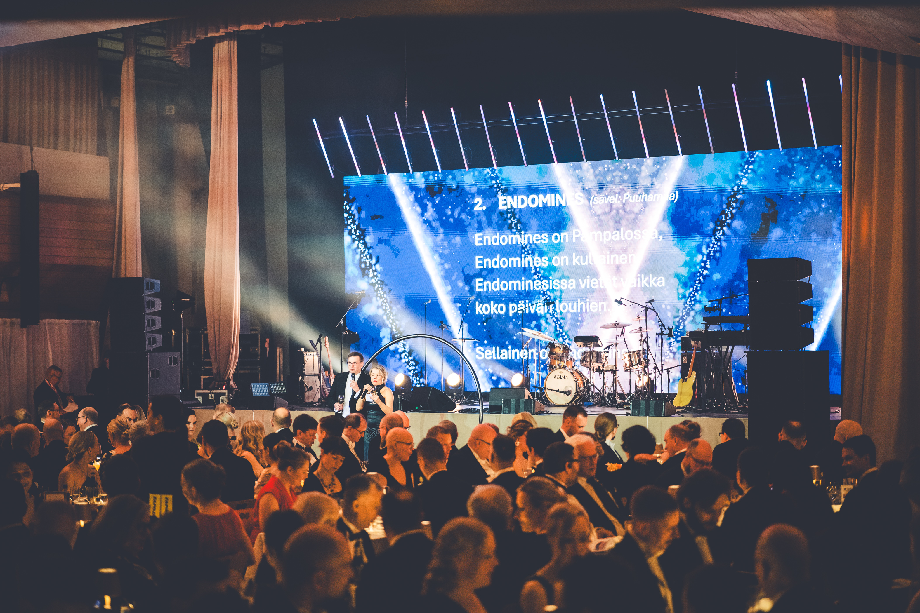 The Sallad party band opened the dance floor with infectious energy, drawing mining professionals to dance almost instantly. When the evening was crowned by a performance from Anna Puu, the dance floor was packed. Guests also had the chance to join in singing, led by the drinking-song duo Iina Vaajamo and Pentti Vihanto.